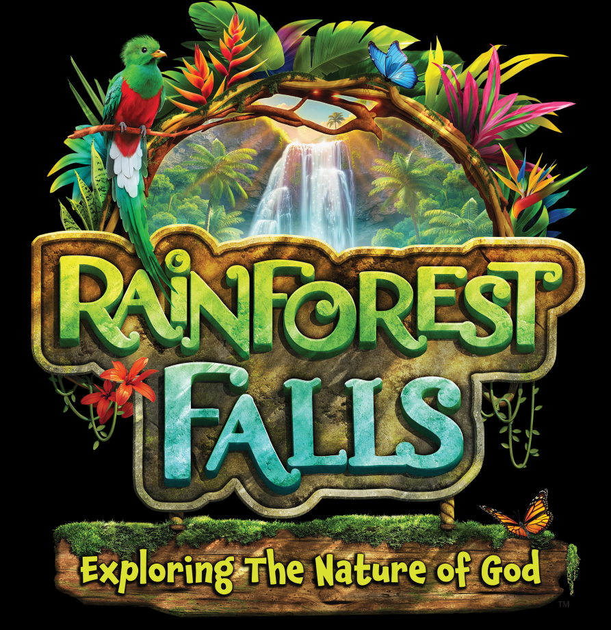 Welcome to "Rainforest Falls" VBS. Step through the mist into Rainforest Falls, overflowing with wild waterfalls, towering trees, and colorful creatures. Beneath a canopy of chattering birds and howling monkeys, kids plunge into a lifelong adventure of discovering the nature of God. They'll explore what it means to be rooted in realtionship with God, their creator, a safe place in life's storms.